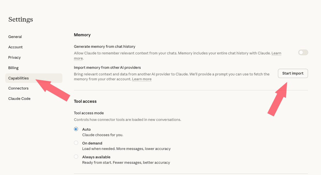 This process allows you to transfer your chat history, communication style, and saved memory from ChatGPT to Claude. You can use the quick built-in import feature or export your complete data archive.